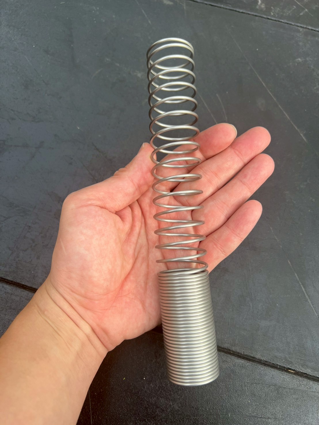 保護管彈簧–又稱蛇形保護彈簧,常套在電線、油管、纜線外側作為機械保護、防扭折與導引彈性結構,日常中也很常見,例如:油壓管線外套防護、電纜與控制線保護、自動化設備導線防纏繞…等。