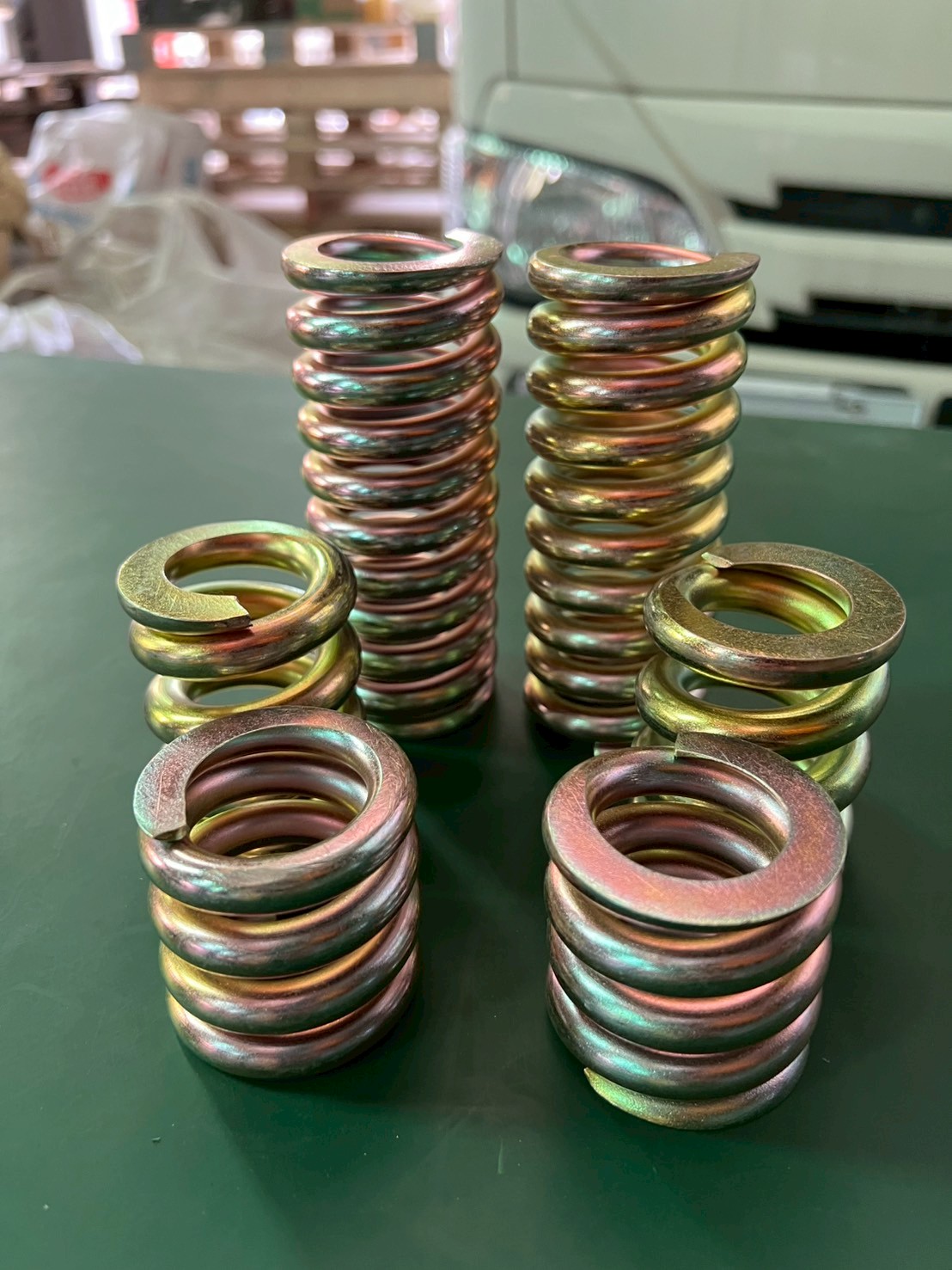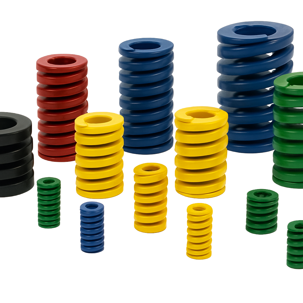 模具彈簧專為高壓加工模具使用,是精密製造業裡不可或缺的角色。常見於模具、機械設備中。與一般壓縮彈簧不同,模具彈簧通常採用矩形截面的扁線製成,具有更高的剛性與耐用性。