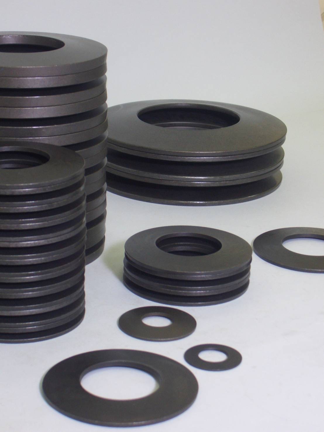 是圓環狀、碟形的壓縮彈簧,常用於承受高壓縮力並維持極小變形量的應用。適合在有限空間內提供高強度支持力,用在壓力閥、電機設備、機械密封裝置(保持密合壓力)、高壓閥門 / 液壓系統、風力發電、螺絲與螺帽防鬆結構。