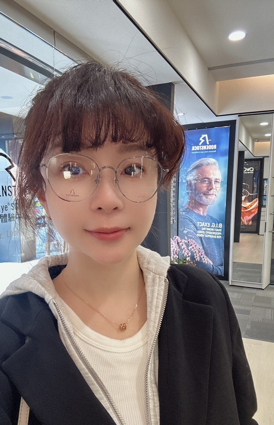 圓山眼鏡店內所以鏡架都可試戴,我很喜歡圓弧鏡架,有種柔和可愛的感覺,比較修飾臉型,金屬鏡架一戴上氣質up!