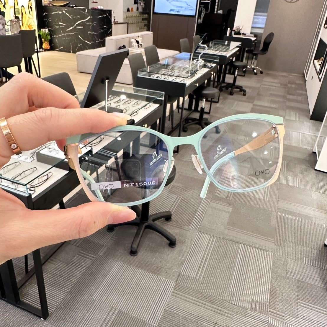 店內環境光線充足,從大門到店內展示櫃都非常乾淨、 一塵不染,店內光線柔和,在試戴眼鏡時比較不會有色差。