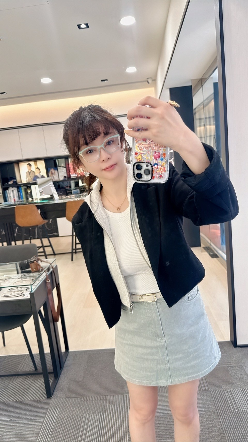 像我平常其實是休閒跟OL的混搭風,有時也只是一件素T+JEANS就出門,比較希望眼鏡是亮點,因為很常被說戴上眼鏡被說像老師,所以鏡架的選擇我會比較偏愛金屬細框,能夠顯臉小、減齡的款式。